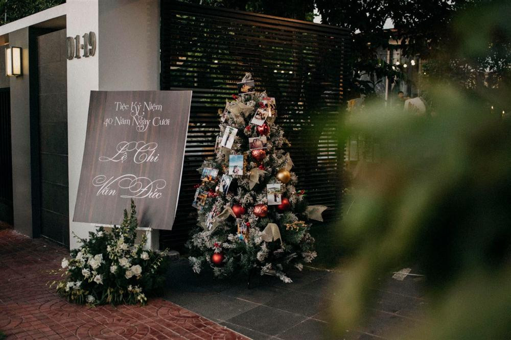 hông gian tiệc kỷ niệm đã được hoàn tất trang trí từ sớm. Thoạt nhìn nơi đây chẳng khác nào một đám cưới sang trọng. Bàn tiệc gần như phủ kín khuôn viên sân vườn, từng bó hoa tươi được bài trí tinh tế, đẹp mắt.