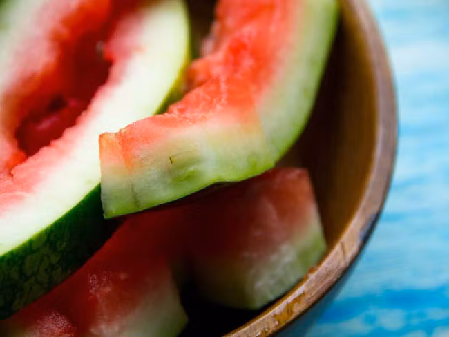 Phần vỏ dưa hấu chứa rất nhiều chất dinh dưỡng. Thay vì ném phần vỏ đi, bạn có thể lọc vỏ phần vỏ màu xanh và sử dụng lớp ruột trắng bên trong để làm sinh tố, salad hoặc các loại súp. Phần ruột trắng này có tác dụng lưu thông máu, cải thiện sức khỏe, tăng ham muốn tình dục và giảm mệt mỏi. Hơn nữa, nó còn chứa nhiều vitamin C và B6 giúp tăng cường hệ miễn dịch.