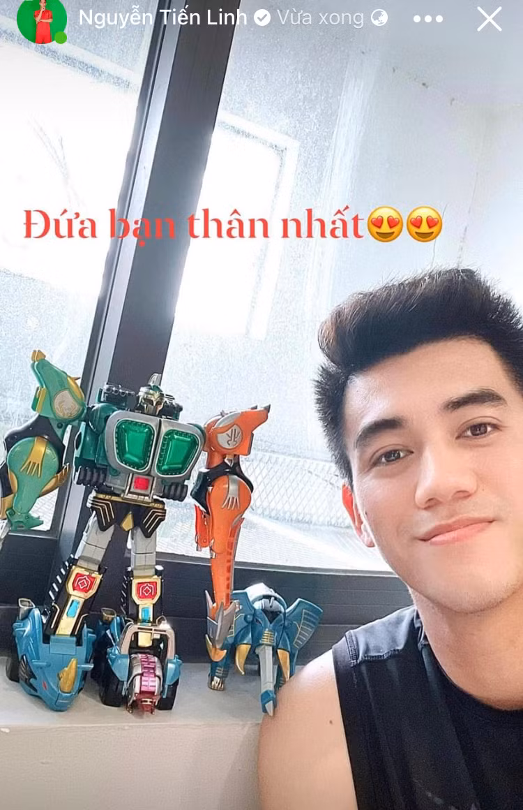 Trước đó, Tiến Linh còn để lộ mặt người bạn thân nhất của anh... dân mạng tò mò tưởng ai hóa ra là một chú mô hình robot.