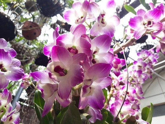 Những giỏ hoa lan đã bắt đầu bung nở đẹp rực rỡ