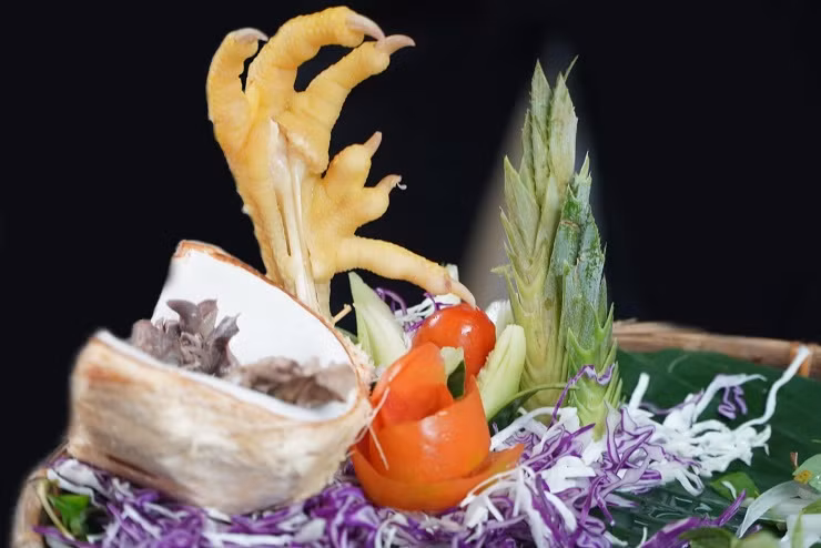 Ngoài màu lông đẹp, nhiều cựa, thịt gà chín cựa cũng rất chắc, ngọt và thơm. Vì vậy, gà chín cựa từ xa xưa đã được dùng làm lễ vật đặc biệt trong những dịp trọng đại của người Mường Tân Sơn dâng lên tổ tiên để cầu mong cuộc sống ấm no, hạnh phúc. Đây cũng được gọi là vua của các loại gà vì theo truyền thuyết, gà chín cựa được cung tiến lên Vua Hùng mỗi dịp giỗ Tổ.