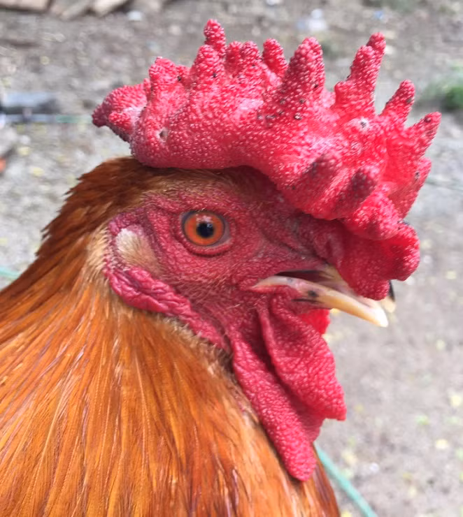 Loại gà này có bộ mào to và đỏ như máu. (Ảnh: Võ Văn Đức).