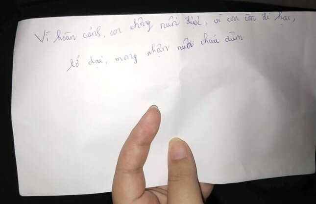Mảnh giấy được phát hiện cạnh cháu bé bị bỏ rơi.