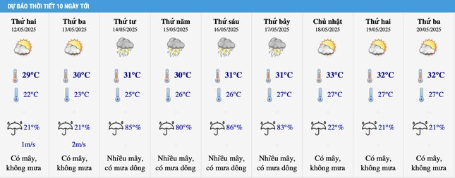 Dự báo nhiệt độ khu vực Hà Nội trong 10 ngày tới.