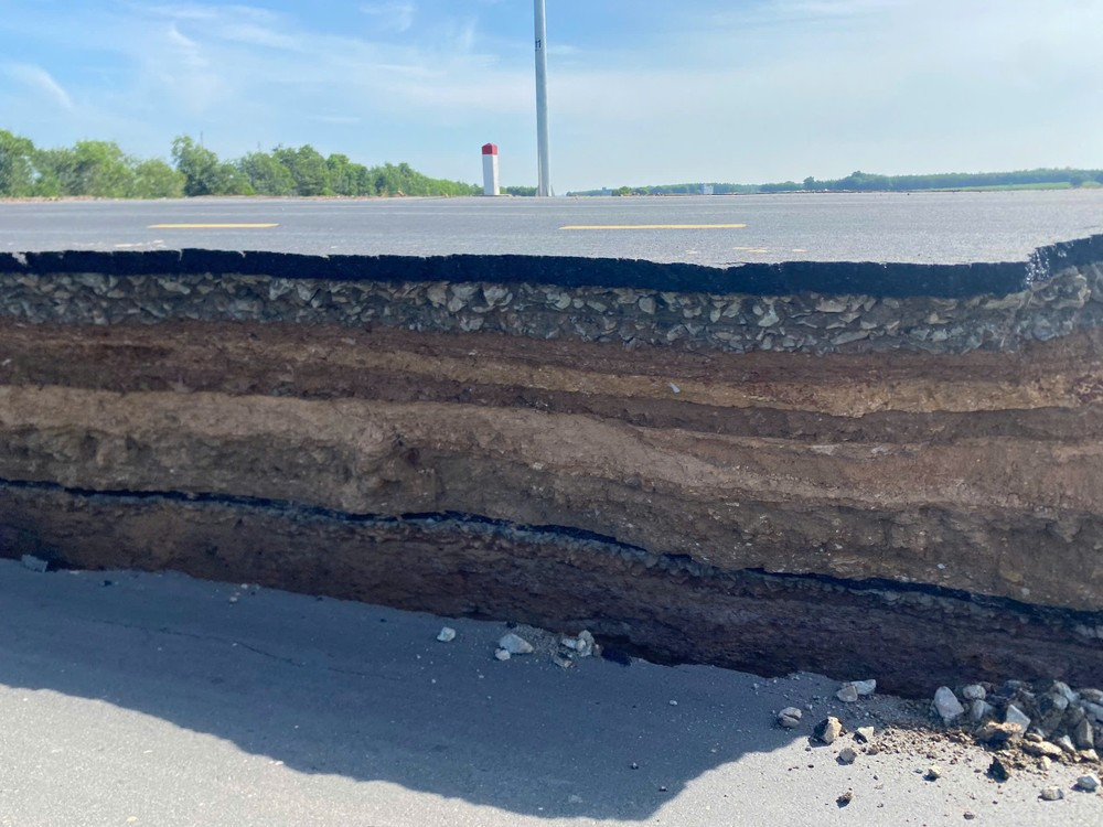Khu vực bị ảnh hưởng dài khoảng 35 m, sâu hơn 3 m, vết nứt sau đó tiếp tục mở rộng đến 60 m, gây gián đoạn hoàn toàn giao thông qua khu vực.