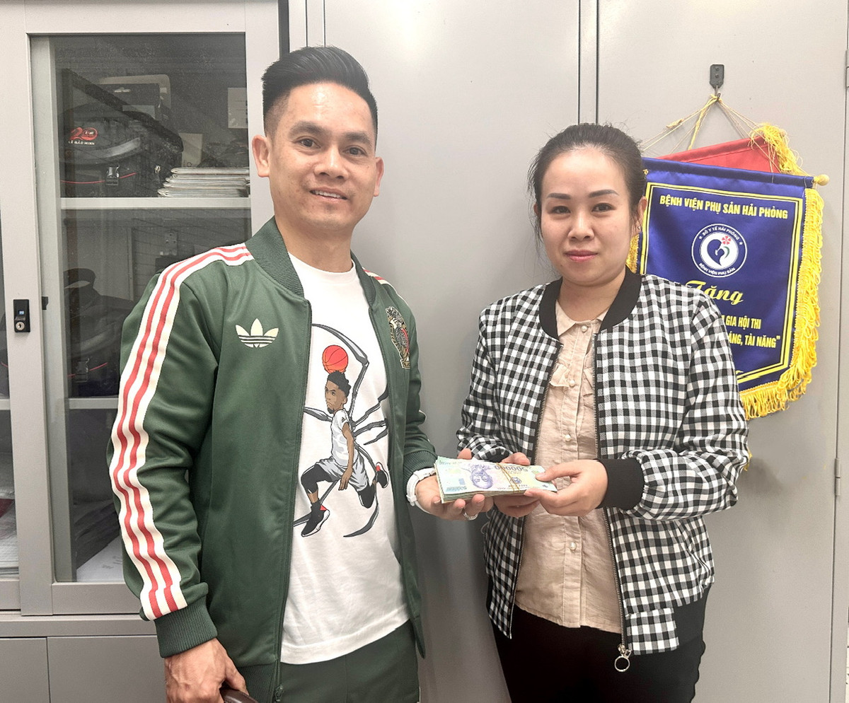 Sau khi phát hiện bản thân làm rơi tiền, anh Nguyễn Vinh Quang (SN 1982, trú tại quận Hồng Bàng, TP. Hải Phòng) đã đi tìm kiếm nhưng không thấy. Biết phía bệnh viện đang tìm chủ nhân số tiền mà nhân viên nhặt được, anh Quang đã đến tìm hiểu. Qua tiến hành xác minh, Phòng Công tác xã hội đã trao trả số tiền cho anh Nguyễn Quang Vinh.