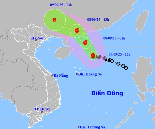 Theo Trung tâm Dự báo Khí tượng Thủy văn Quốc gia, bão số 7 trên Biển Đông đã tăng cấp. Hồi 16 giờ ngày 07/9, vị trí tâm bão ở vào khoảng 19,3 độ Vĩ Bắc; 113,7 độ Kinh Đông, trên vùng biển phía Bắc khu vực Bắc Biển Đông. Sức gió mạnh nhất vùng gần tâm bão mạnh cấp 9-10 (75-102km/giờ), giật cấp 13. Di chuyển theo hướng Tây Bắc, 10-15km/giờ.