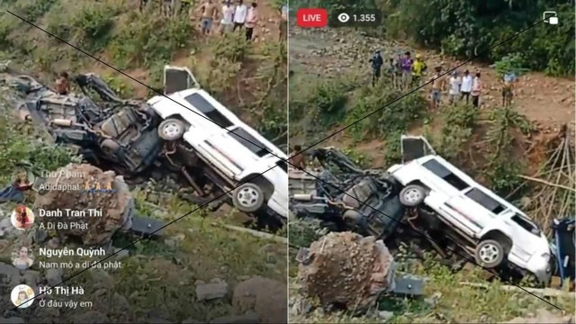 Hình ảnh đăng tải phát ở dạng live (phát trực tiếp) có nhiều xe ô tô con, xe tải va chạm liên hoàn rồi bị lật xuống vực sâu tại khúc cua nói trên.