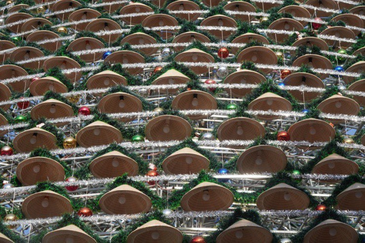 Độc lạ cây thông Noel làm từ 4.200 chiếc nón lá