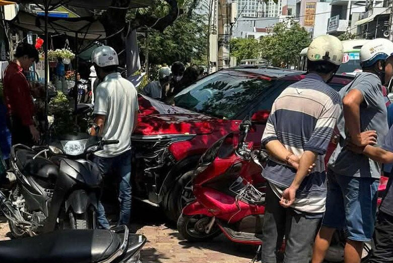 "Ôtô 5 chỗ không rõ vì sao đang dừng trên vỉa hè lại lao thẳng ra đường với tốc độ rất nhanh, nếu không tông vào cây xanh chắc hậu quả còn nghiêm trọng hơn", anh Hùng, nhân chứng kể và cho biết tài xế là phụ nữ.