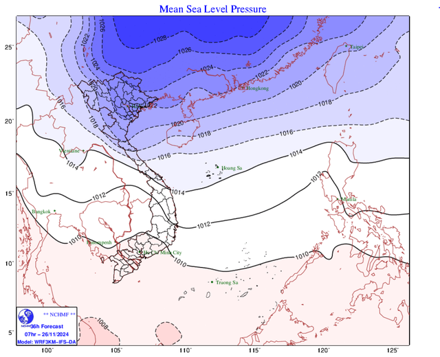 Theo Trung tâm Dự báo Khí tượng Thủy văn Quốc gia, hiện nay (25/11), bộ phận không khí lạnh mạnh đã báo đang tiến sát đến biên giới nước ta.