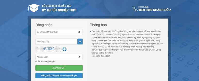 Cách 2, tra cứu điểm thi tại hệ thống quản lý Kỳ thi tốt nghiệp Trung học Phổ thông của Bộ GD&ĐT. Thí sinh truy cập vào website: http://tracuudiem.thitotnghiepthpt.edu.vn/; nhập thông tin số báo danh, mã xác nhận và bấm tra cứu.