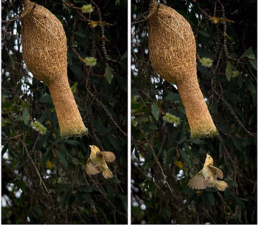 Từ xa, tổ chim dòng dọc mái trông như những cái dấu chấm hỏi treo lơ lửng giữa trời. Nếu được mục kích các “kiến trúc sư” dòng dọc xây tổ, ta sẽ thấy chúng cần mẫn cắp từng cọng cỏ, tươi có, khô có rồi nhả ra, lựa cọng khác rồi lại bỏ xuống, đến vài ba lần mới chọn được một cọng thật vừa ý, ngậm cho thật chặt bay về tổ.