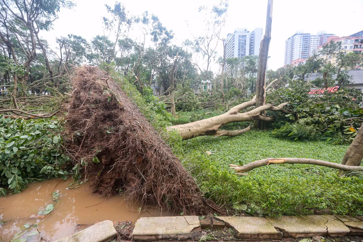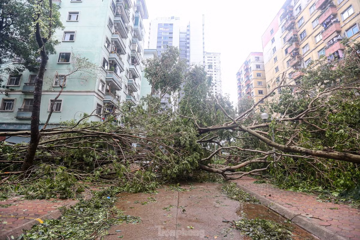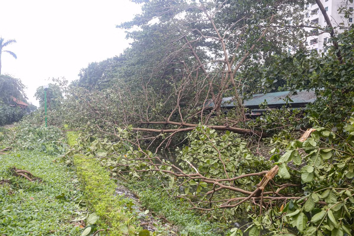 Ghi nhận của PV, khu đô thị Linh Đàm (quận Hoàng Mai), khu vực có mật độ dân cư dày nhất Thủ đô trở nên tan hoang, cây đổ hàng loạt, cuộc sống sinh hoạt của nơi vạn dân bị ảnh hưởng.