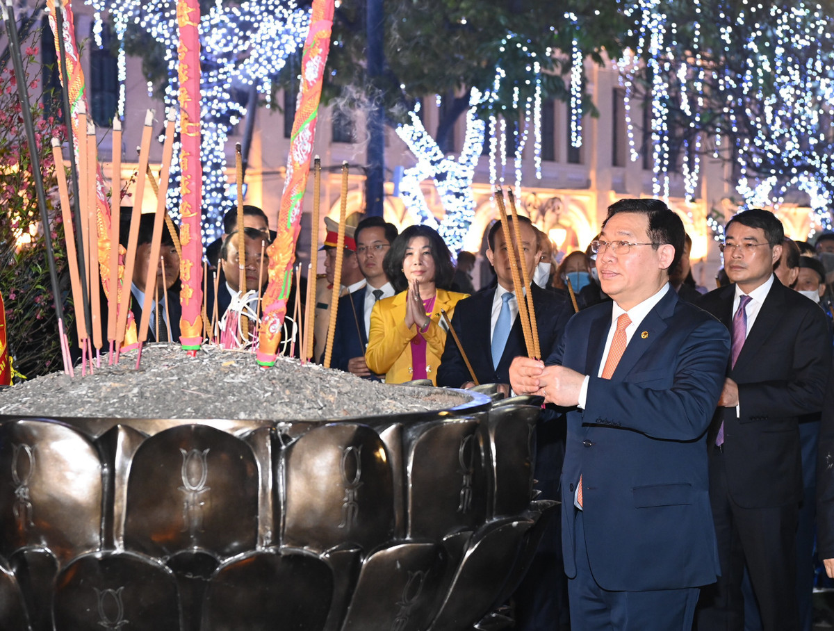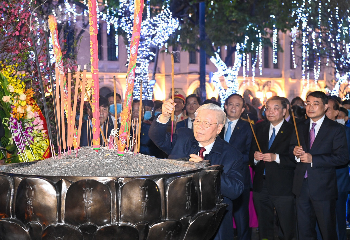 Tổng Bí thư, Chủ tịch nước Nguyễn Phú Trọng đến dâng hương Tượng đài Vua Lý Thái Tổ tại Vườn hoa Lý Thái Tổ, tưởng nhớ công ơn các vị tiên hiền, tiên liệt, các liệt tổ, liệt tông đã dày công xây dựng và bảo vệ non sông đất nước, để con cháu ngày nay được chung hưởng thái bình, độc lập, tự do.