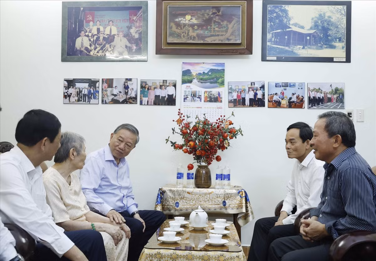 Tổng Bí thư, Chủ tịch nước Tô Lâm cùng Đoàn công tác của Trung ương thăm hỏi thân nhân gia đình Tổng Bí thư Lê Duẩn. Ảnh: Thống Nhất – TTXVN