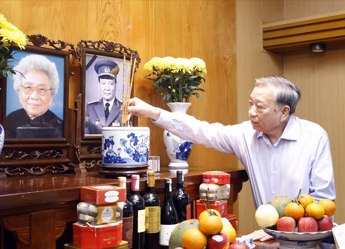 Tổng Bí thư, Chủ tịch nước Tô Lâm dâng hương tưởng nhớ Đại tướng Lê Đức Anh, nguyên Chủ tịch nước. Ảnh: Thống Nhất – TTXVN