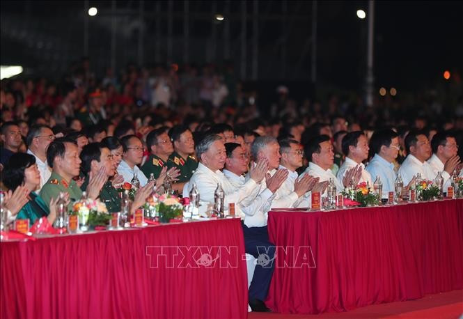 Tổng Bí thư Tô Lâm, Bí thư Quân ủy Trung ương; Ủy viên Bộ Chính trị, Thường trực Ban Bí thư Trần Cẩm Tú dự chương trình tại điểm cầu Hà Nội. Ủy viên Bộ Chính trị, Thủ tướng Chính phủ Phạm Minh Chính dự chương trình tại điểm cầu thành phố Huế. Dự chương trình tại điểm cầu Thành phố Hồ Chí Minh có Ủy viên Bộ Chính trị, Chủ tịch Quốc hội Trần Thanh Mẫn.