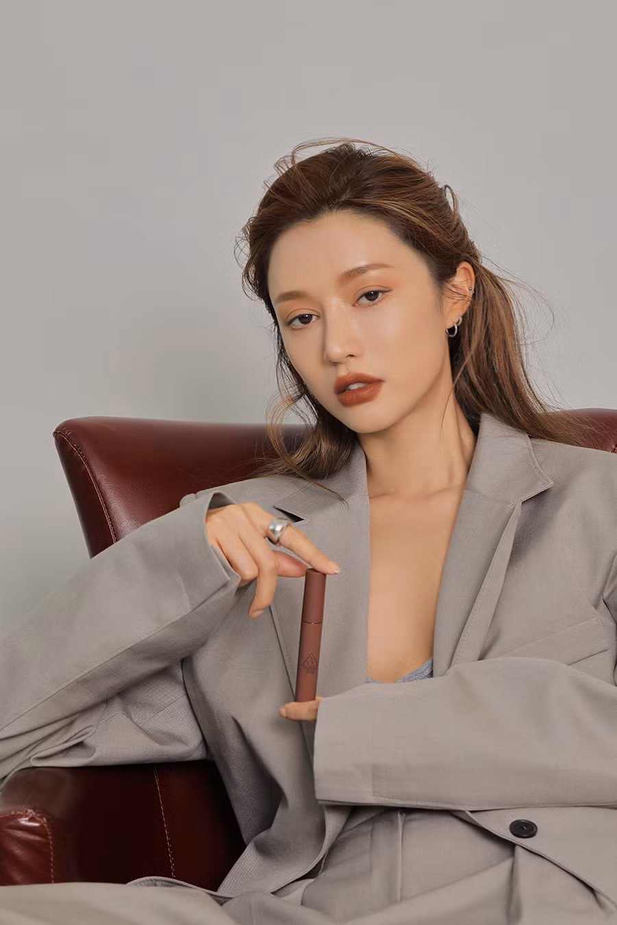 Lúc này, chị em đã có thể hoàn tất lớp trang điểm với một tông son phù hợp cho má và môi. Với màu mắt cam trầm và eyeliner nâu đậm, chị em nên ưu tiên những sắc son thiên cam, chẳng hạn như cam đất hoặc cam cháy để đảm bảo tổng thể makeup được hài hòa.