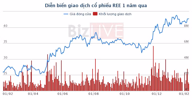 Trong một năm giao dịch vừa qua, cổ phiếu REE của bà Hạnh đã tăng khá mạnh, khoảng 64,2%. Tính đến phiên 2/2, thị giá REE đạt 42.700 đồng/cổ phiếu.