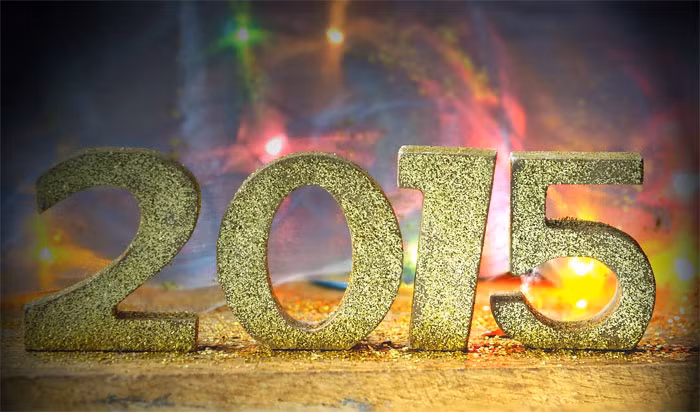 Năm mới đi liền với sự hứng khởi, niềm vui và niềm hy vọng về những điều tốt đẹp sẽ đến, vì vậy nhiều tấm thiệp chúc mừng năm mới 2015 tràn ngập sắc đỏ. Ngoài ra, pháo hoa, hoa, rượu, những quả bóng trang trí... cũng là "chất liệu" thường thấy.