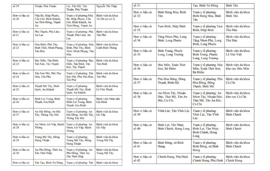 Theo kế hoạch của Sở Y tế TP.HCM, các bệnh viện, trung tâm cấp cứu và trạm y tế trên địa bàn sẽ bố trí nhân lực, phương tiện và thuốc men nhằm đảm bảo chăm sóc sức khỏe cho cử tri, người ứng cử và lực lượng tham gia phục vụ bầu cử.
