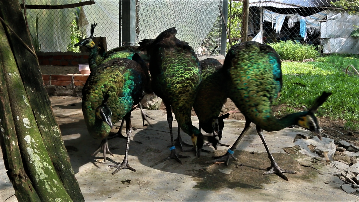 Loài chim công này thường ăn là các loại côn trùng có sẵn trong tự nhiên nên chi phí thức ăn khá rẻ. Tuy nhiên, nguồn vốn bỏ ra ban đầu và thời gian chăm sóc lại rất nhiều. Ước tính, để có được trại chim công với số lượng như hiện tại anh Toản đã bỏ rả khoảng 1 tỷ đồng để đầu tư. Mỗi cặp chim công non trên thị trường đã có giá trên 10 triệu đồng (tùy thuộc vào chủng loại). Mỗi năm, anh Toản đã thu về được tầm 200 đến 300 triệu đồng từ việc bán chim công. Ảnh: Bảo Trung