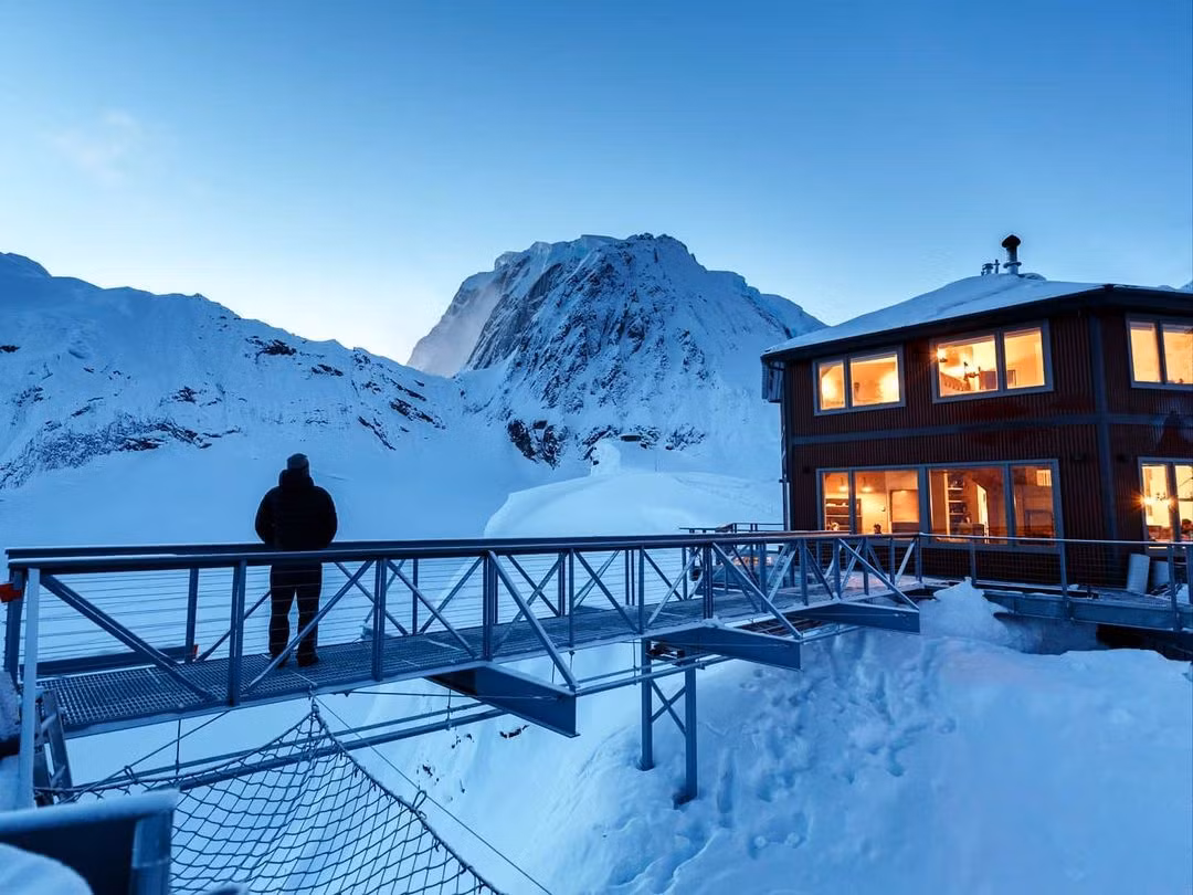 Sheldon Chalet có thể chứa tối đa 10 người vào bất kỳ thời điểm nào, có tầm nhìn ngoạn mục ra khung cảnh xung quanh phủ đầy tuyết vào ban ngày và cực quang vào ban đêm. Các hoạt động ban ngày bao gồm leo núi, đi bộ xuyên sông băng, tham quan vườn nho và câu cá, trong khi vào ban đêm, bạn có thể sử dụng phòng xông hơi khô trên tầng mái, ngắm sao hoặc nếm thử các món ăn do đầu bếp người Alaska Dave Thorne chế biến.