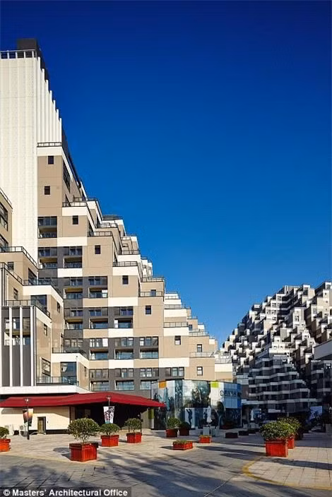 Có kiến trúc giống kim tự tháp, tòa chung cư 18 tầng ở Côn Sơn (Trung Quốc) đã thu hút sự chú ý của nhiều người. Nhìn từ trên cao, công trình giống như một khối lego xếp chồng lên nhau mỗi góc 45 độ. Kiến trúc sư của công trình này cho biết ông đã lấy cảm hứng từ ruộng bậc thang truyền thống ở Trung Quốc và môn thể thao parkour để hình thành nên tòa nhà. Ảnh:Daily Mail.