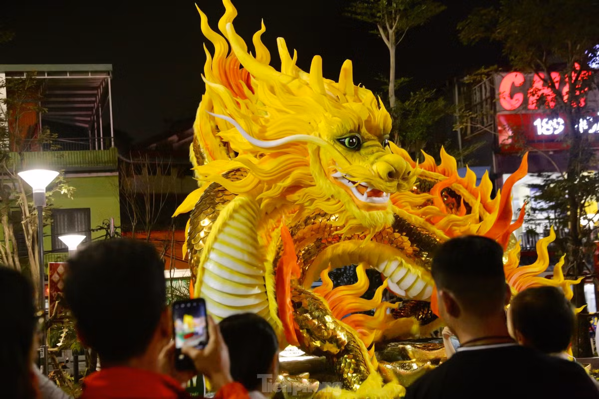 Dù đang trong quá trình hoàn thiện những công đoạn cuối cùng nhưng các linh vật rồng vẫn hút ánh nhìn từ người đi đường.