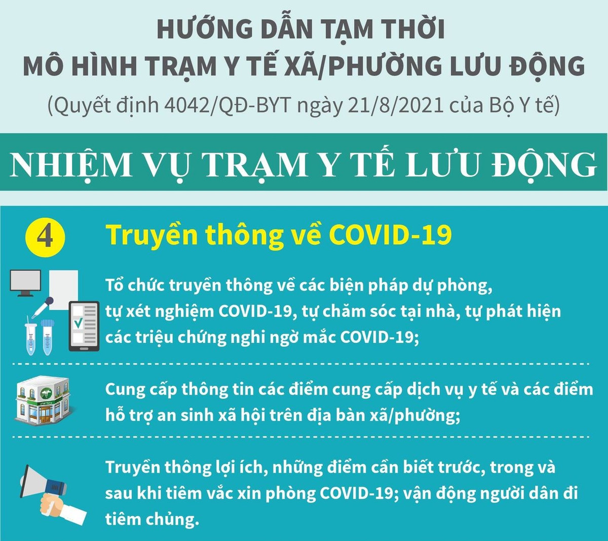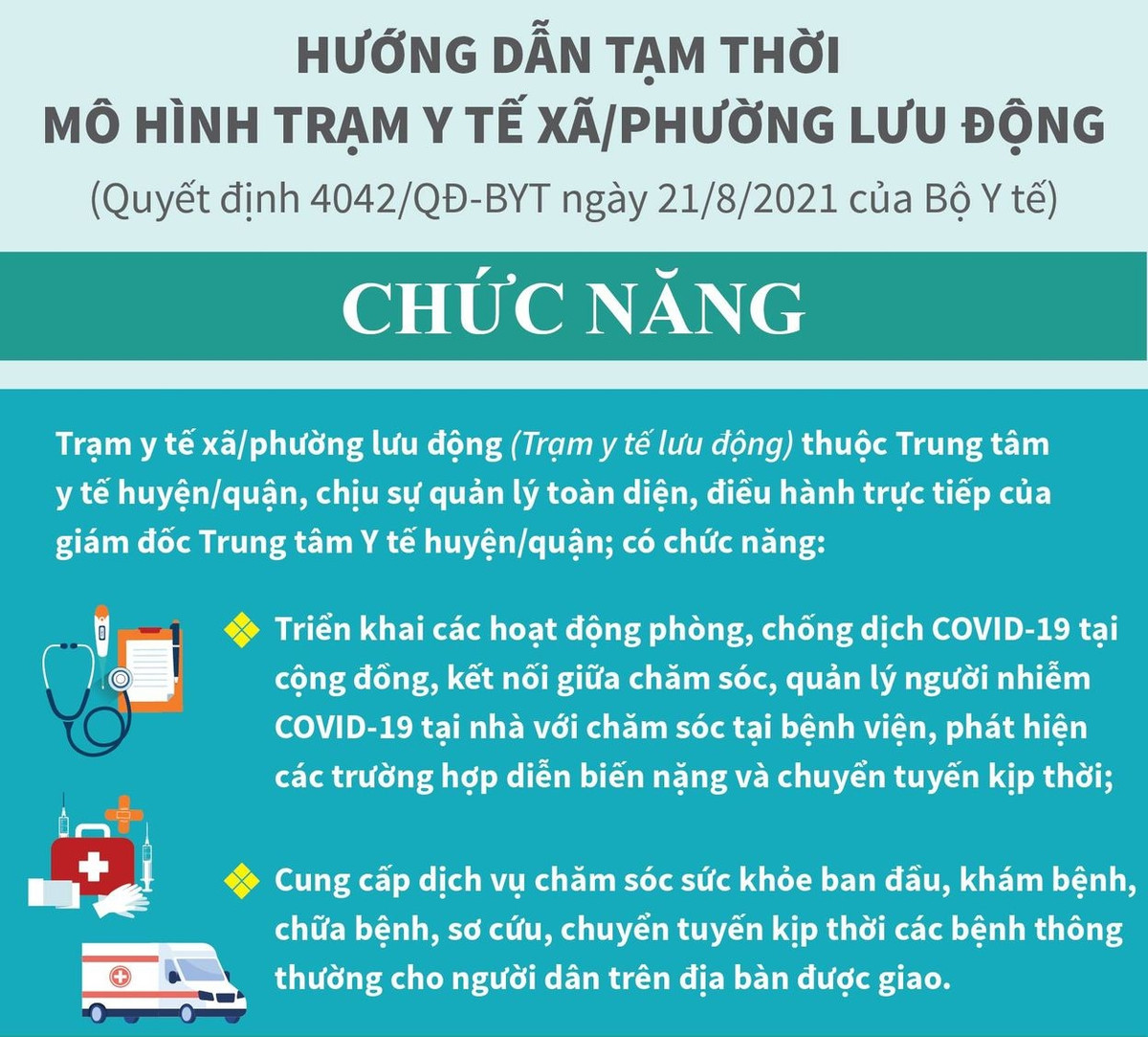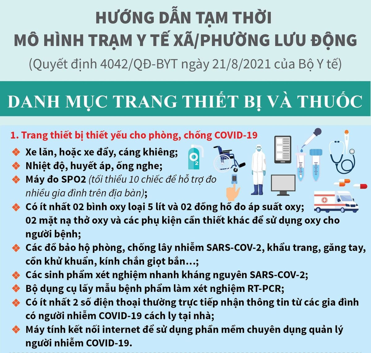 (Kiến Thức) - Ngày 21/8/2021, Bộ Y tế ban hành Quyết định 4042/QĐ-BYT về Hướng dẫn tạm thời mô hình Trạm y tế xã, phường lưu động trong bối cảnh dịch COVID-19.