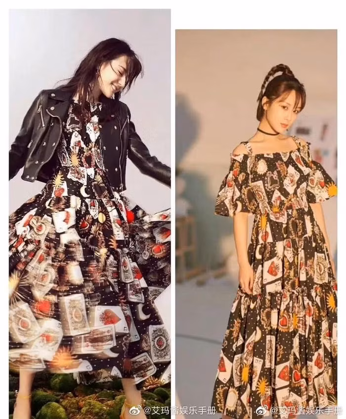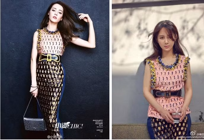 Mới đây, các blogger Trung Quốc đã đăng tải lên Weibo so sánh những bức hình trùng lặp về concept của Địch Lệ Nhiệt Ba và Dương Tử.