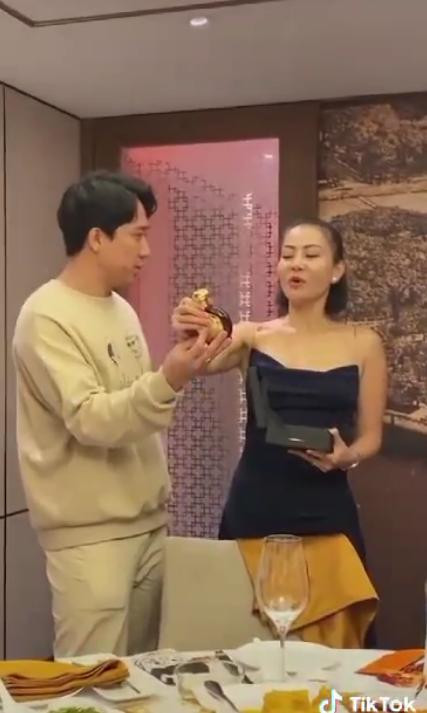 Mới đây, Thu Minh đã đăng tải một đoạn clip ghi lại buổi tiệc sinh nhật nữ ca sĩ. Đáng chú ý nhất chính là khoảnh khắc cô hí hửng "khui" món quà được Trấn Thành tặng.