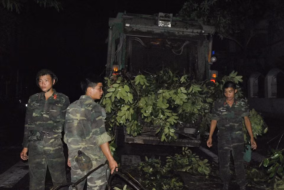 Hàng chục chuyến xe của Vệ sinh môi trường đã được huy động đến chở cành, rác và những dư âm của cơn mưa, lốc để lại