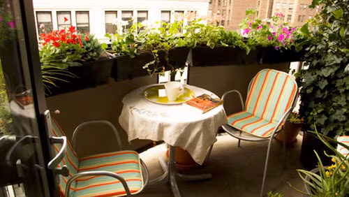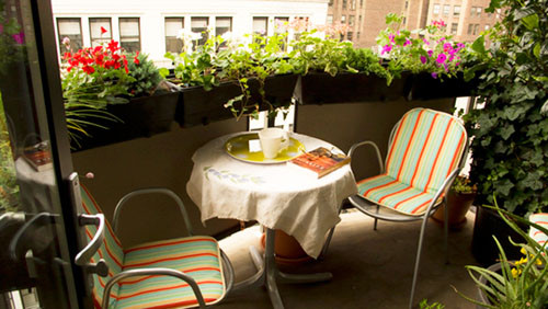 Ban công nhỏ sẽ trở nên hút mắt khi bạn chọn những gam màu sáng tạo làm điểm nhấn. Những chiếc gối tựa màu xanh hay ghế ngồi màu hồng, hay đơn giản là một vài chậu cây sơn màu rực rỡ cũng đủ xua tan sự đơn điệu, quen thuộc của không gian ban công.