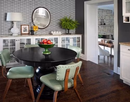 Trang trí tường bằng giấy dán là một xu hướng phổ biến từ những năm 1990 và xu hướng này đang một lần nữa trở lại. Phòng ăn là một không gian hoàn hảo để bạn thử nghiệm giấy dán tường trước khi áp dụng cho những không gian khác trong ngôi nhà mình.