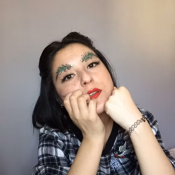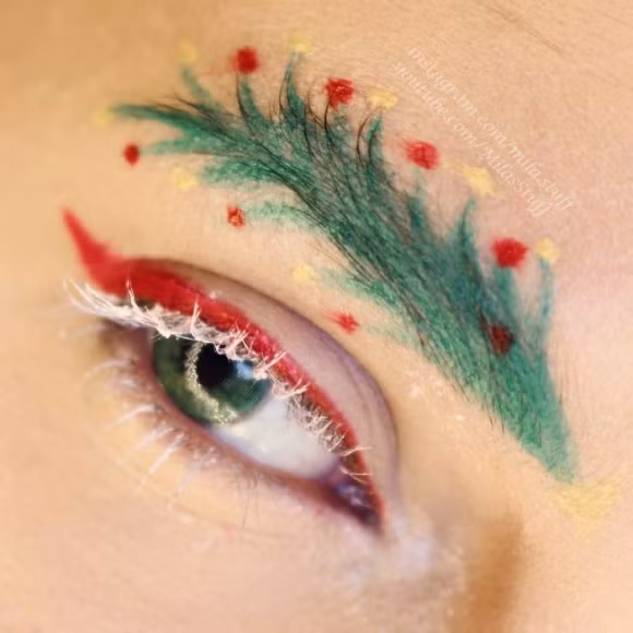 Gần đến ngày Noel, một blogger chuyên về làm đẹp người Canada đã gây chú ý với kiểu trang điểm lông mày hình cây thông. Để tạo được kiểu lông mày độc đáo này, nữ blogger đã chải và tạo hình, rồi khéo léo gắn những hạt nhiều màu sắc lên.