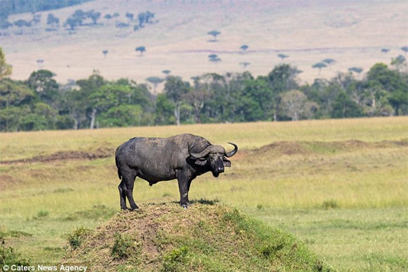 Con trâu rừng tỏ ra rất hung hãn và không hề e sợ trước móng vuốt của kẻ đi săn. Ngược lại, nó lại đóng vai kẻ săn mồi.
