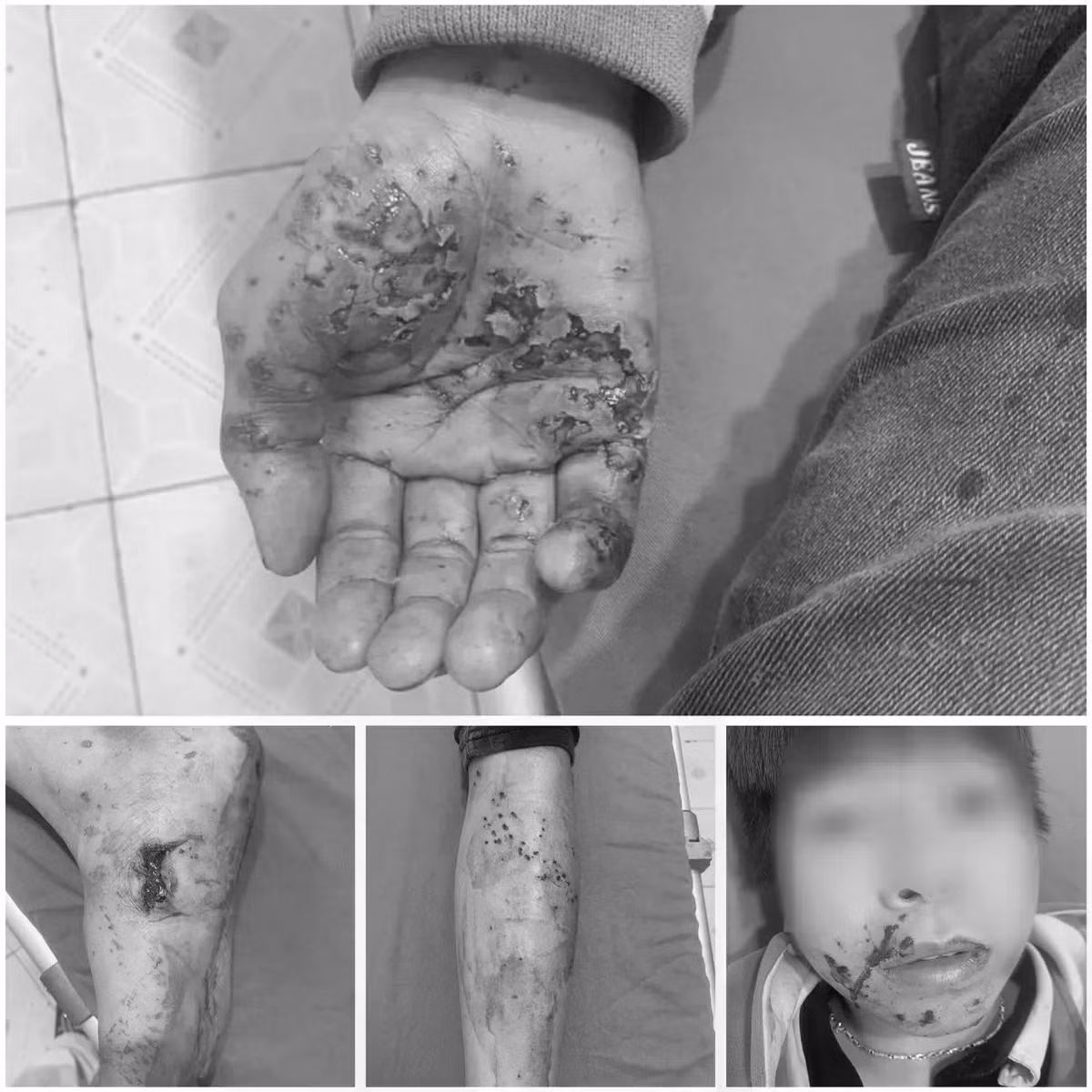 Bệnh nhân là B.V.D. (13 tuổi, trú tại xã Vĩnh Tuy, tỉnh Tuyên Quang), nhập viện trong tình trạng bỏng và chấn thương vùng tay, chân và mặt.