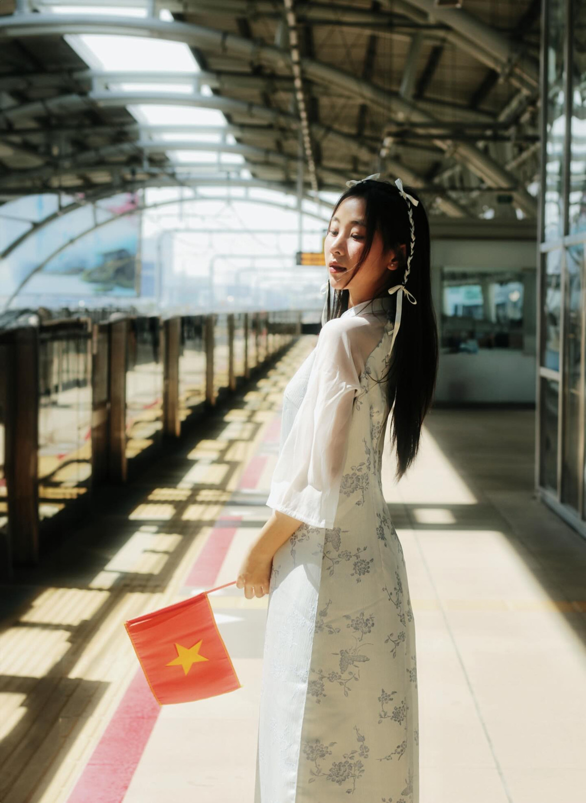 Tuyến metro số 1 TP.HCM không chỉ là công trình giao thông tiên tiến, mà còn là điểm check-in độc đáo, nơi nhiều bạn trẻ chọn làm phông nền chụp ảnh Tết cùng tà áo dài.