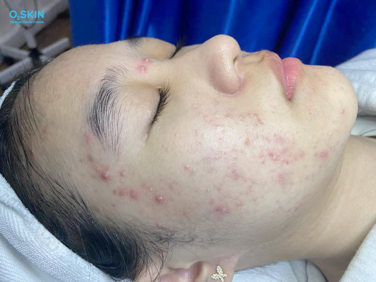 Bước vào tuổi dậy thì, gương mặt của cô bạn Minh Vy nổi nhiều mụn, bắt đầu là các nốt sưng nhỏ và dần sưng viêm to hơn ở hai bên má. “Lúc đó em nghĩ rằng mụn dậy thì cứ để một thời gian sẽ tự hết, nhưng em chờ mãi mụn vẫn không giảm, ngược lại còn bùng lên nhiều mụn viêm, mụn ẩn hơn. Em có thử dùng các sản phẩm trị mụn theo review trên mạng nhưng chẳng cải thiện được nhiều”, Minh Vy tâm sự.