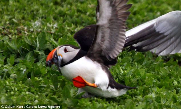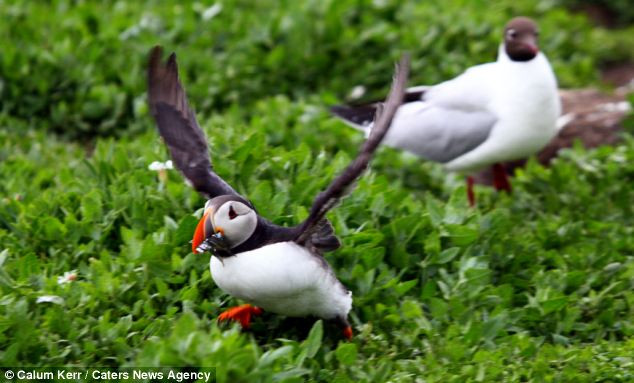 Cảnh tượng đàn chim cậy động cướp mồi của chim hải âu cổ rụt được nhiếp ảnh gia Calum Kerr ghi lại đảo Farne ở ngoài khơi bờ biển Northumberland, Anh.