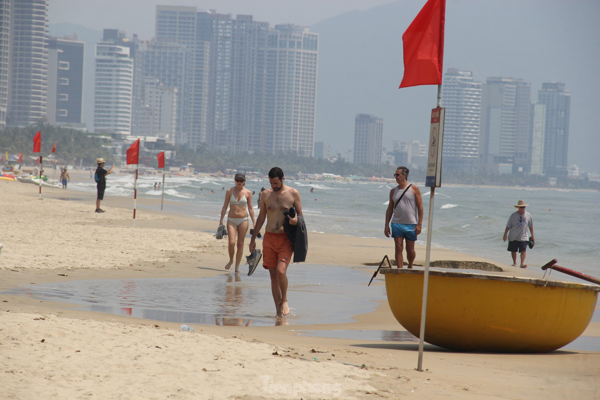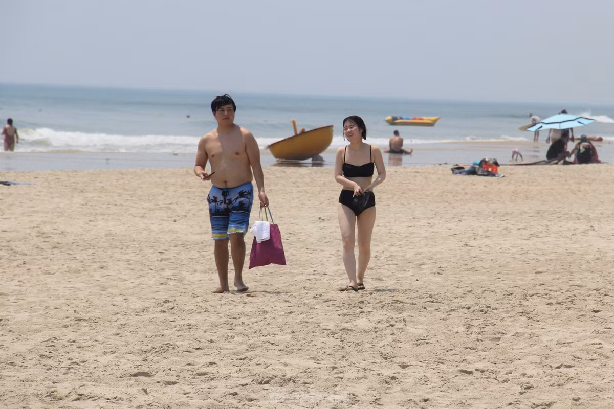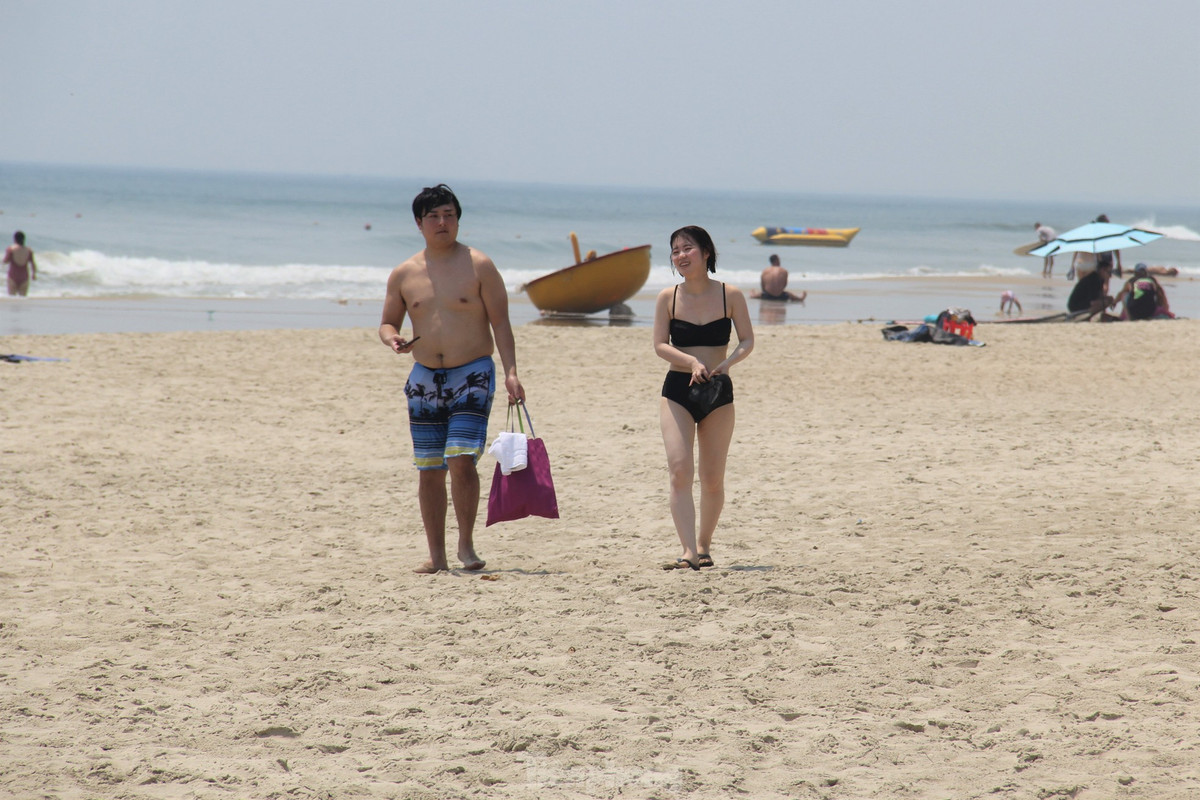 Trên biển hầu như chỉ có du khách nước ngoài tắm giữa trưa. Nhiệt độ Đà Nẵng lên tới gần 40 độ C. Nhiều du khách chia sẻ biển là địa điểm họ không thể bỏ qua khi tới Đà Nẵng. Ảnh: Thanh Hiền