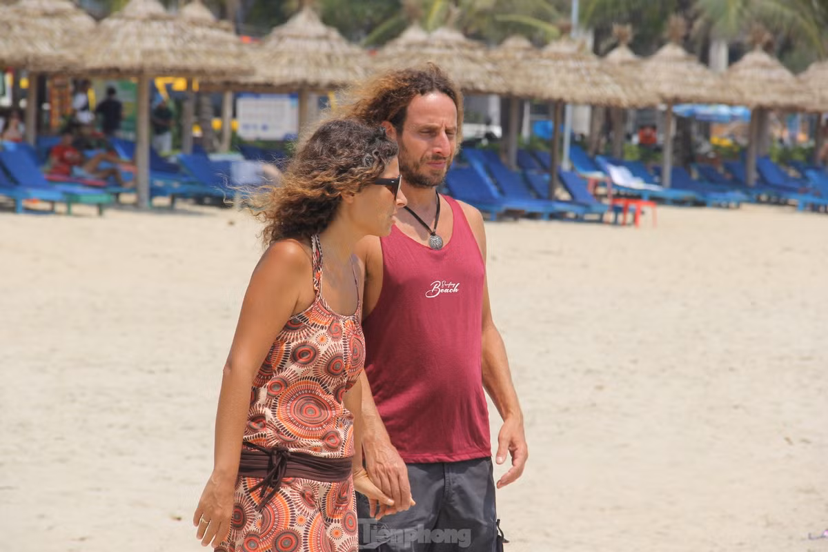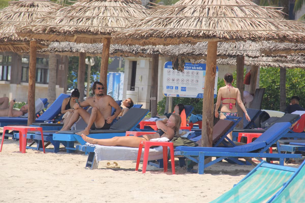 Trời Đà Nẵng như đổ lửa, khách nước ngoài thích thú phơi nắng giữa trưa