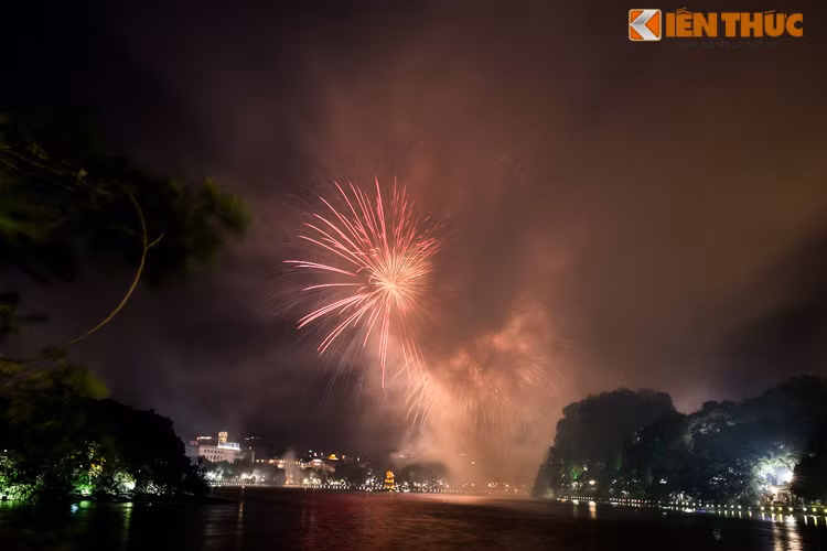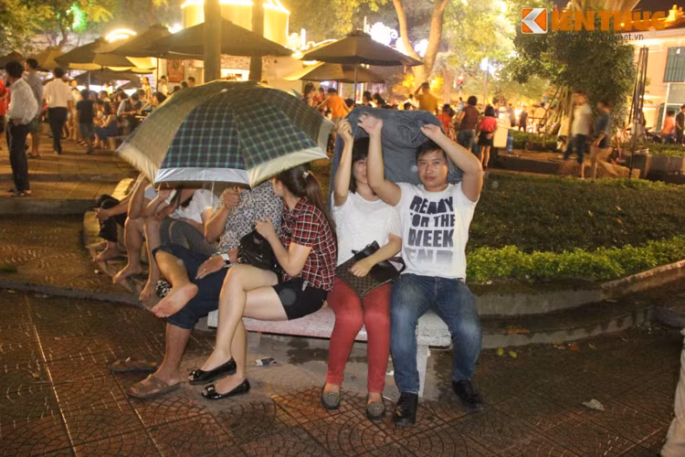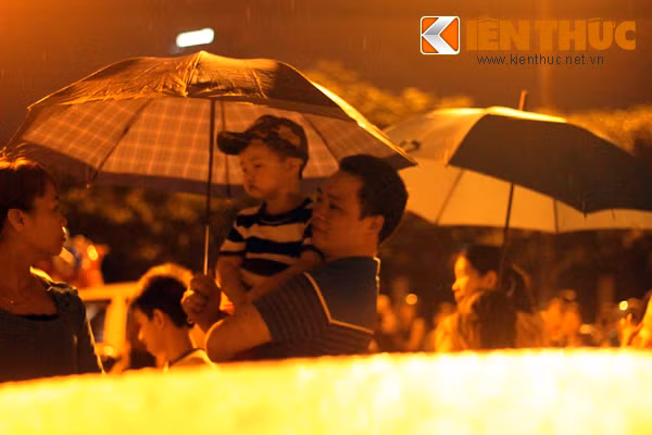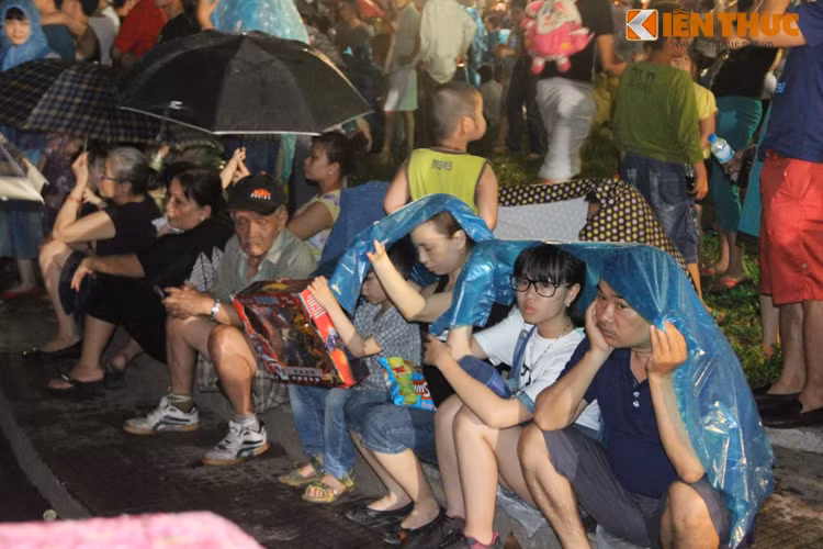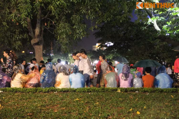 Hình ảnh người Hà Nội đội mưa xem bắn pháo hoa: