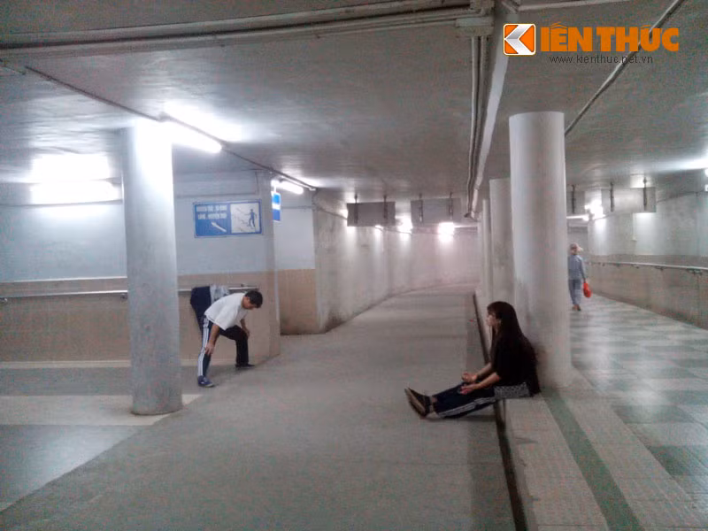 Theo ghi nhận của PV Kiến Thức, vào thời điểm buổi sáng và buổi tối, nhiều người dân thủ đô tập trung xuống các đường hầm đi bộ để "luyện công" (tập luyện thể dục).