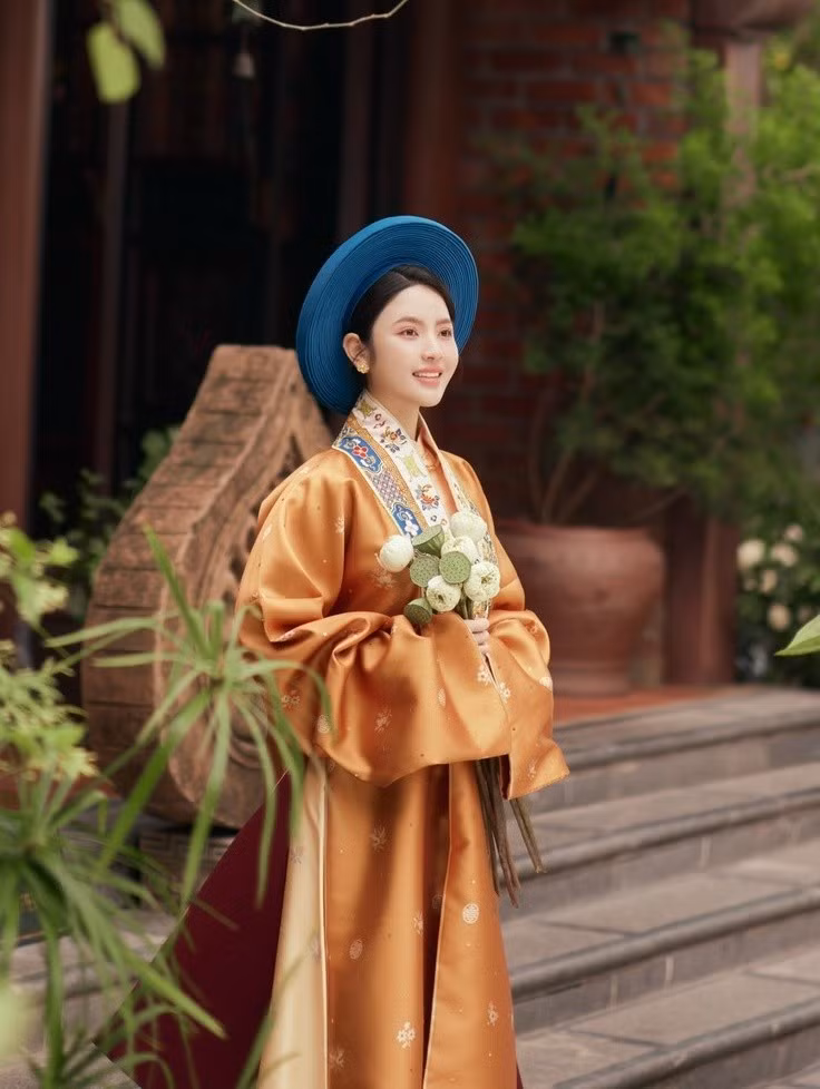 Chiếc áo dài mà Quang Hải mặc chụp ảnh được phỏng dựng dựa trên trang phục mà vua Bảo Đại từng mặc nhiều lần trong các dịp trang trọng, đặc biệt là trong chuyến sang Pháp năm 1939. Mẫu áo này không có hoa văn lớn ở phần ngực mà có nhiều hình thêu màu vàng nằm rải rác, nhìn vẫn có điểm nhấn mà không kém phần thanh nhã.