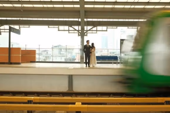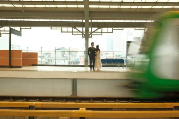 Cặp đôi ghi lại khoảnh khắc hạnh phúc tại những địa điểm nổi tiếng ở Hà Nội: ở tàu điện trên cao, Hồ Tây và Sóc Sơn... nơi Bảo Linh - Quang Đức lớn lên.