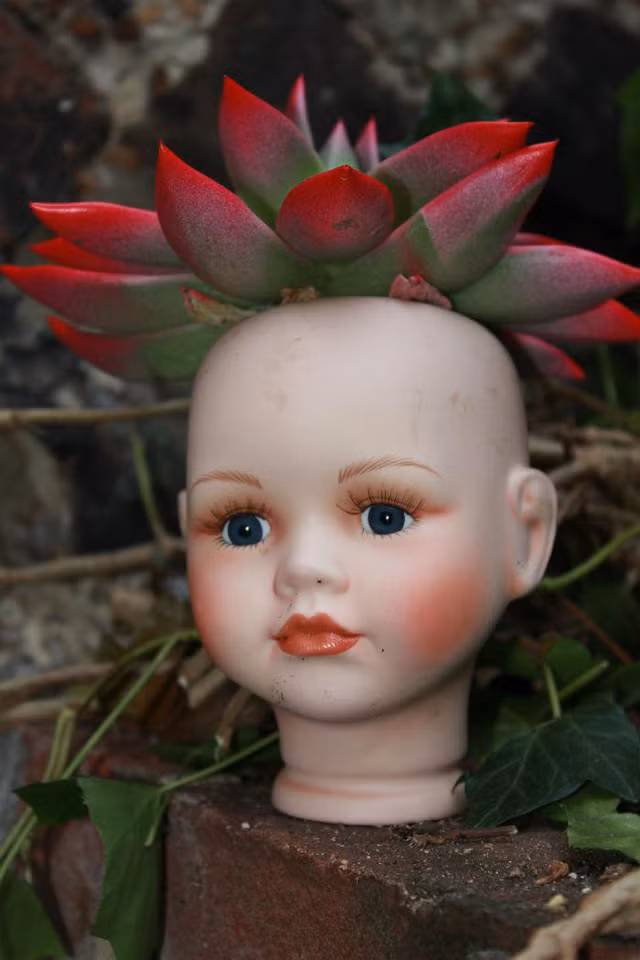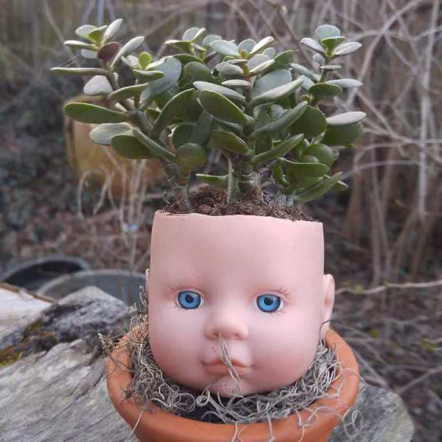 Tùy theo ý tưởng của chủ nhân mà những chậu cây búp bê có thể biến thành chậu cây phiên bản "kinh dị" hoặc đáng yêu, làm đồ trang trí nhà cửa hết sức độc đáo, đảm bảo cách trồng cây trang trí này không đụng hàng.