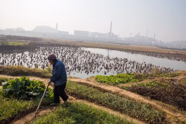 | Nông dân Kazakhstan làm việc trên cánh đồng. |